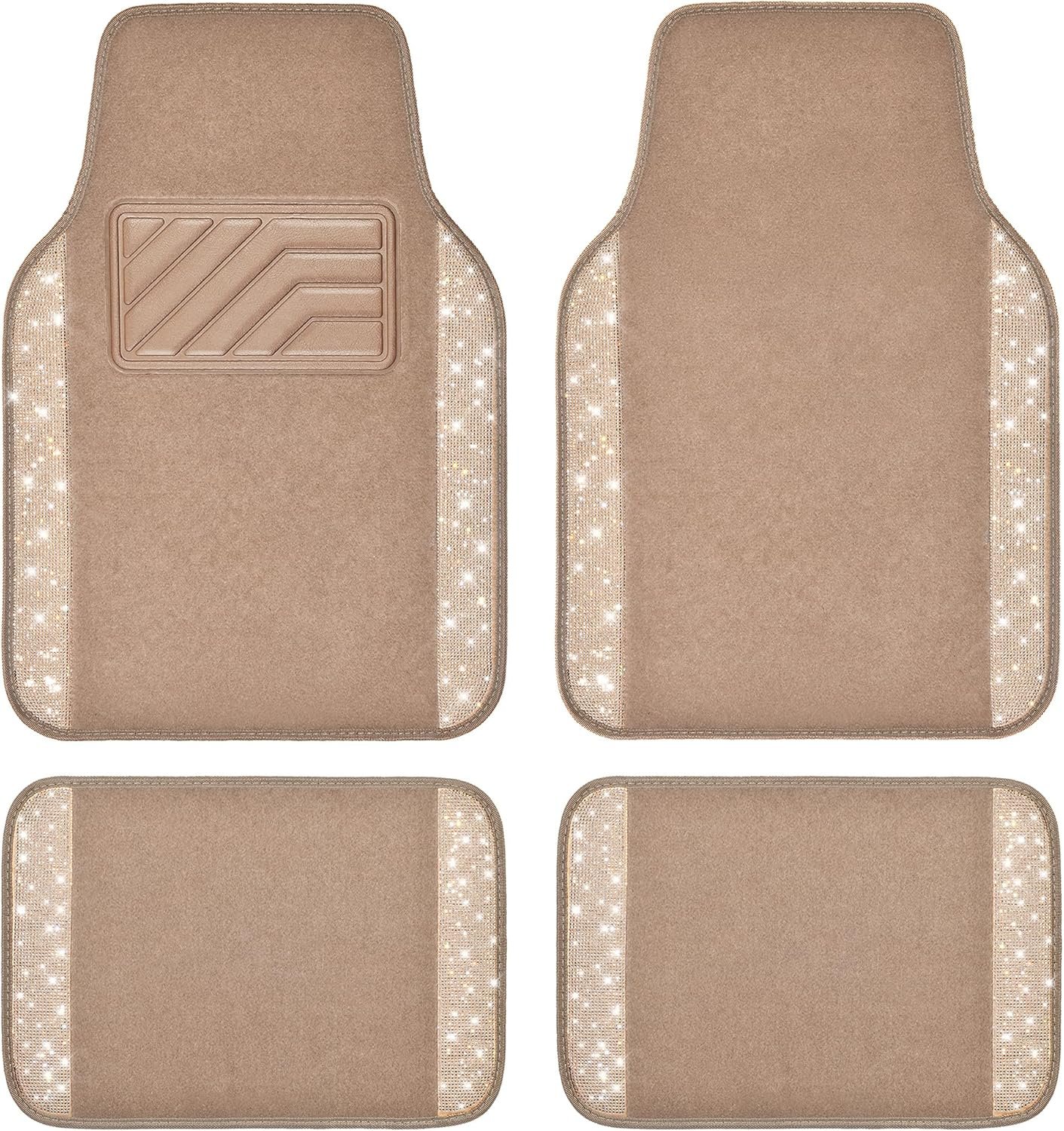 - BLING DIAMOND FLOOR MAT – Premium carpet with pretty rhinestones silver diamond and beige carpet made. Refresh and protect your car in just seconds. Shield your car upholstery from stains, spills and everyday wear & tear with these waterproof floor mat